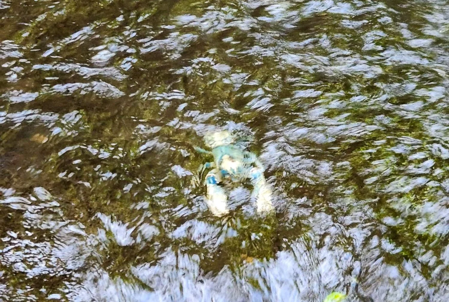 Sitting by one such crossing for a lunch break, we spotted the local Spiny Blue Crayfish in one of the many deeper pools – a protected species - which looks like a cross between a yabby and a lobster but with vibrant blue markings.